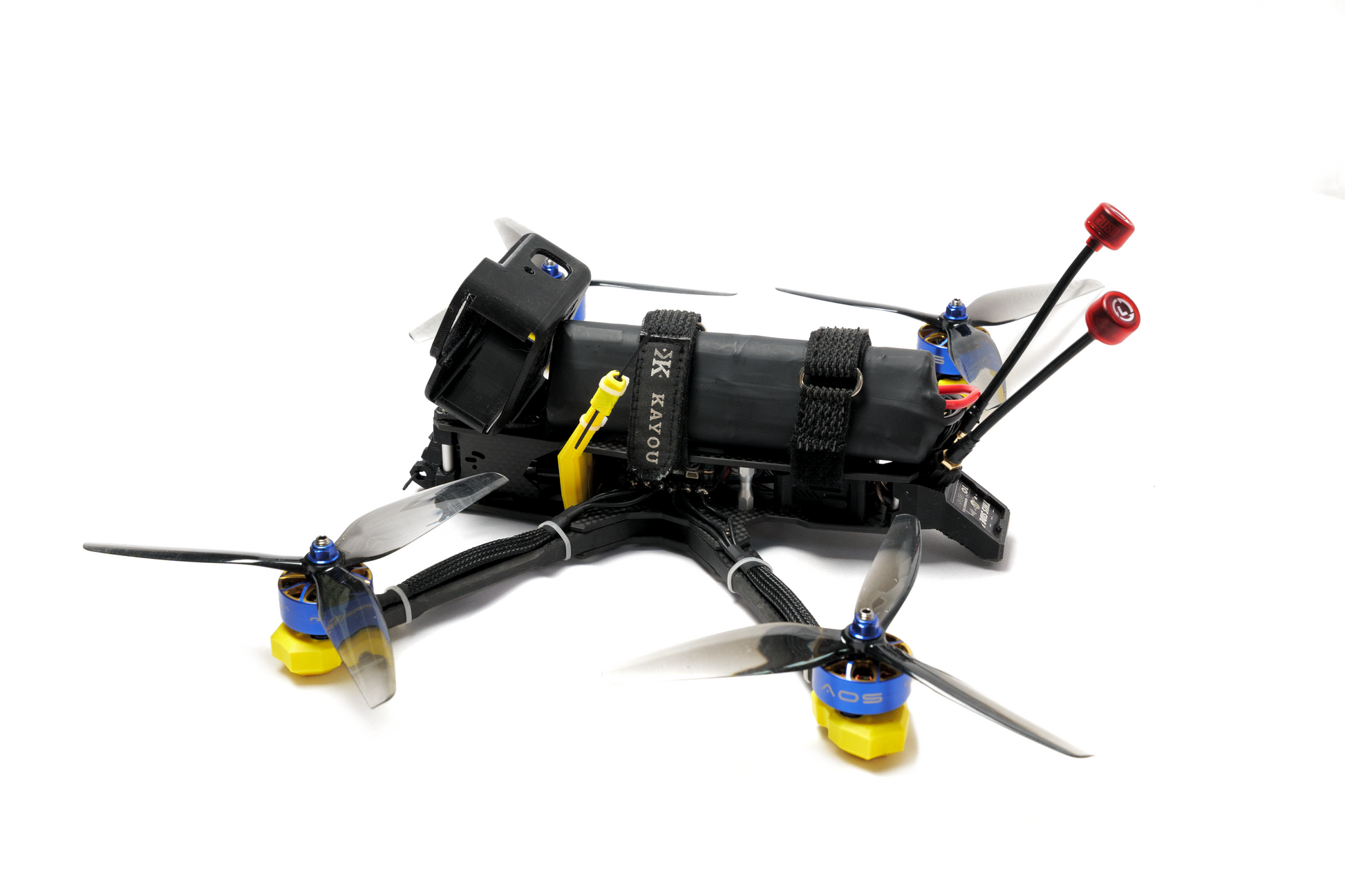 Passe nickel sur un Kayouloin (7"). Elle est utilisable aussi sur un GEPRC Mark 5 (5"), mais elle prend toute la place au dessus, donc pas de GoPro.